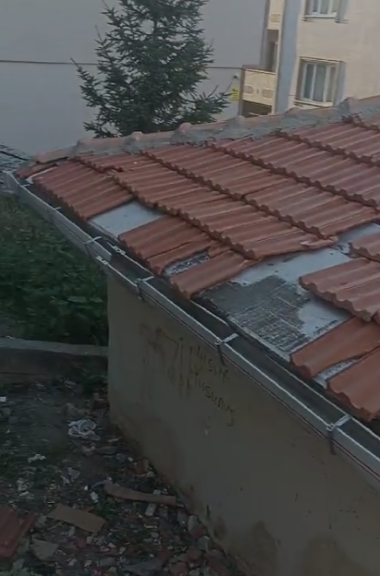 Burası Akçağlayan mahallesi Kızılcıkdibi sokağa ait. Bir elektrik trafosu. İt-çakallar sürekli üstüne çıktığı için trafo devamlı bu şekilde. Adamlar kiremitleri yapsa da belli bir süre sonra yine bu hale geliyor. Buralar geçeleri uyuşturucu kullananların mesken tuttuğu bir yer.