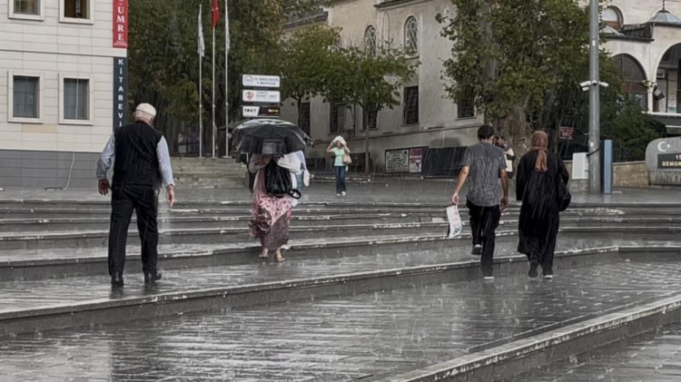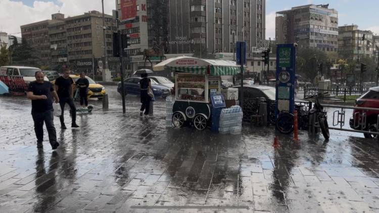 Aralıklarla şiddetini arttıran yağmura hazırlıksız yakalanan kimi vatandaşlar kapalı mekanlara sığınırken, kimi ise şemsiyenin altında yağmurun tadını çıkardı.