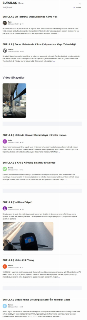 Toplu taşıma araçlarında klimasız bir biçimde seyahat eden Bursalılar şikayetlerini Şikayetvar adlı platformdan dile getirdi.