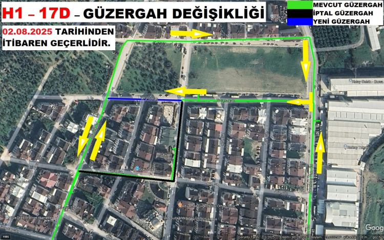 H1 ve 17D isimli 2 hattın güzergahında değişiklik yapıldığı bildirildi.