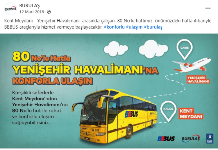 (BURULAŞ'ın resmi sosyal medya hesabından yapılan 2018 tarihli bir paylaşım)