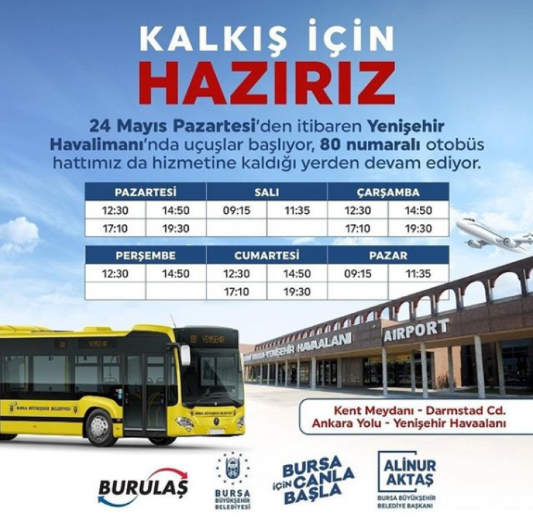 Seferlerin başlamasıyla birlikte, kent merkezinden Yenişehir Havaalanı’na ulaşım hizmeti veren BURULAŞ’ın 80 numaralı hattı da tekrar aktif hale getirilmişti.