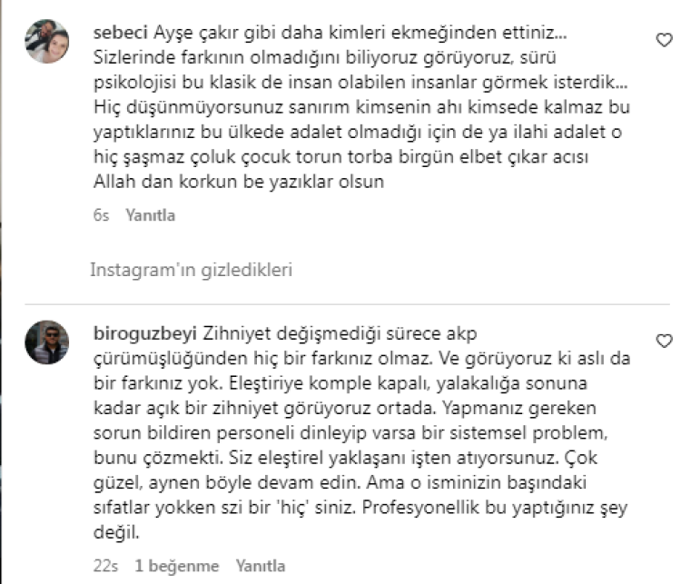 "Yorumumdaki paylaştığım hesabı kurumumun sosyal medya hesabına yapmadığımı Sayın Genel Müdürümüz Fahrettin Beşli'nin kendi hesabuına yaptığımı üstüne basarak belirtmek isterim. Üzerime atılan bu çirkin ifadeleri kabul etmiyorum. Disiplin kuruluna çıkarılma kararının arkasındaki düşündüğünüz farklı sebepleri ve displin kuruluna sevk edildiğimin günü ve saati davet edilme evrağını ya da mesaj olarak tarafıma ibraz edilmesini arz ve rica ediyorum."