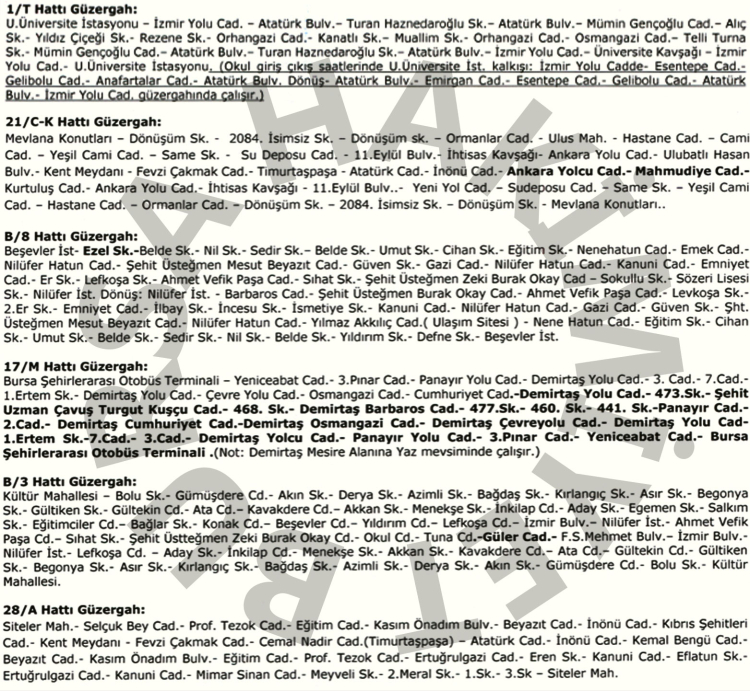 BURULAŞ'ın talebiyle Bursa'da çok sayıda otobüs hattının güzergahı değişti!