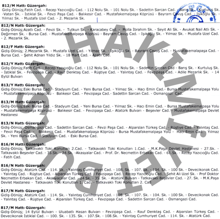 İşte 812/M, 812/N, 812/F, 812/Y, 813/Y, 813/M, 813/N, 816/M, 816/N, 817/N, 817/M isimli hatların güzergahları...