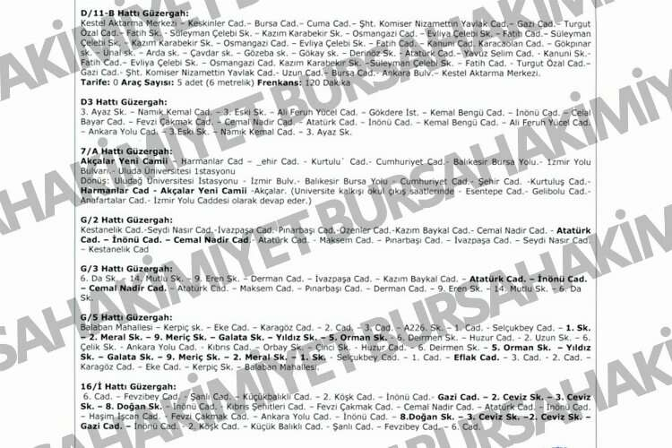 Bursa Büyükşehir Belediyesi Ulaşım Koordinasyon Merkezi (UKOME) Kurulu, çok sayıda otobüs hattının güzergahında değişiklik yapılması için gelen talepleri değerlendirdi. İşte alınan kararlar...