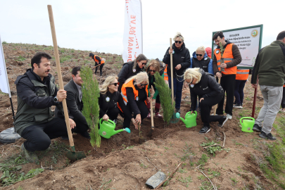 Birleşik Uluslararası Sağlık ve Eğitim Gönüllüleri Dernekleri Federasyonu (BUSADER)'in Mudanya'nın Göynüklü mahallesinde, 10 bin ağaçtan oluşturacağı BUSADER Hatıra Ormanı için ilk fidanlar dikildi.