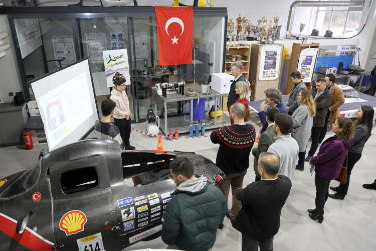 Rektörlük binasındaki sunumun ardından heyet, üniversitedeki laboratuvar ve Ar-Ge merkezlerini gezdi, öğrenci topluluklarının atölyelerinde yürütülen projelere dair bilgi aldı.