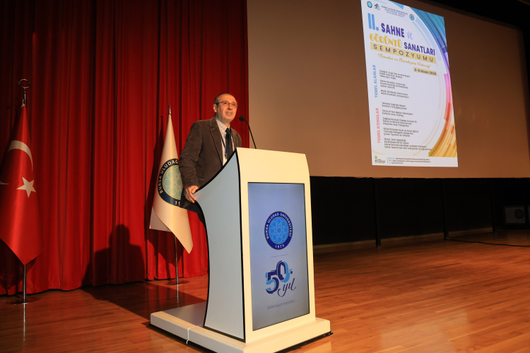 Program kapsamında düzenlenen törende konuşan BUÜ Rektörü ve Sempozyum Onursal Başkanı Prof. Dr. Ferudun Yılmaz, araştırma üniversiteleri arasındaki yarışın genellikle sosyal bilimler ve sanat alanındaki faaliyetleri ihmal eden bir görüntü sergilediğini ifade etti. Uluslararası sıralama kriterlerinin sanat alanındaki birikimi tam olarak yansıtamamasının, bu alanlarda emek veren akademisyen ve öğrencilerde bir değersizlik hissi yaratmaması gerektiğini vurgulayan Prof. Dr. Ferudun Yılmaz, üniversite kurumunun insan ediminin tüm zenginliğini bünyesinde barındıran bir yapı olduğunu belirtti. Bilimsel ve teknolojik ilerlemenin sanatın doğasını dönüştürdüğüne dikkat çeken Yılmaz, yapay zeka ve dijital teknolojilerin sunduğu imkanların yanı sıra insani varoluş açısından barındırdığı kaygılara da değindi. Konuşmasının sonunda sanatın insan kalabilmenin yegane yolu olduğunu hatırlatan Rektör Yılmaz, dünyanın distopyaya savrulduğu bir dönemde umudun ancak sanatsal faaliyetlerden neşet edebileceğini ve üniversite olarak bu düşünsel zemine katkı sunmaya devam edeceklerini önemle vurguladı.