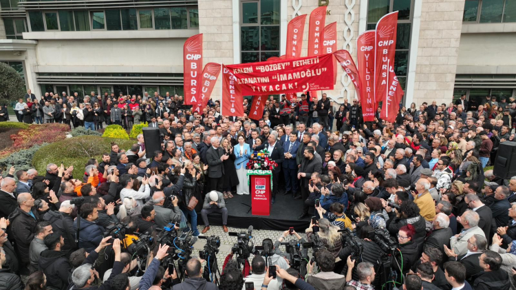 Cumhuriyet Halk Partisi (CHP) Bursa İl Başkanlığı, Bozbey’e destek amaçlı halkı Bursa Büyükşehir Belediye Binası önüne çağırdı.