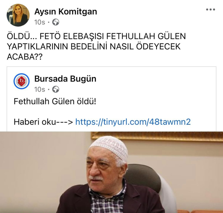Gazeteci Aysın Komitgan'ın haber sunduğu Bursa’da Bugün haber sitesinin web tv kanalında ‘Gün Aysın’ programında, FETÖ lideri Fethullah Gülen’in ölüm haberini verirken kullandığı ifadeler tüm Türkiye'yi ayağa kaldırmıştı.