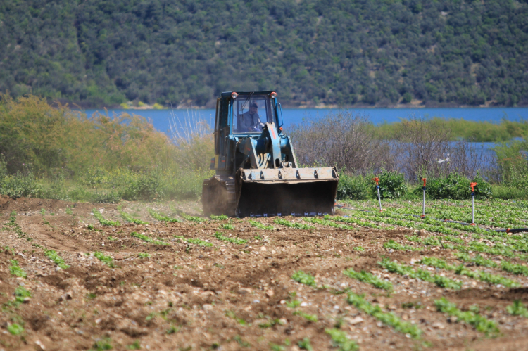 Köylülerin 45 gün ek süre isteğini kabul etmeyen DSİ ekipleri güvenlik önlemleri altında ekili arazileri, iş makineleriyle düzledi.