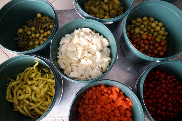 "Sebzemizin yaklaşık olarak yüzde 90-95'ini kurduk. Bir tek lahanamız var. Lahanamızı da dönem dönem yapıyoruz. Salatalık Afyonkarahisar, Balıkesir bölgesinden geliyor, İzmir bölgesinden de geliyordu ama artık çok nadir gelmeye başladı, bu bölgelerden alıyoruz. Lahanamız ve pancarımız Afyonkarahisar, havucumuz Konya'dan, acurumuz Gaziantep, Kahramanmaraş üzerinden geliyor. Keleğimiz Balıkesir, Gaziantep'ten geliyor. Yani aşağı yukarı Türkiye'nin her yerinden de sebze geliyor. Çanakkale bölgesinden acı biberimiz geliyor. Yine bunun yanında Balıkesir'den biber çeşitlerimiz geliyor."