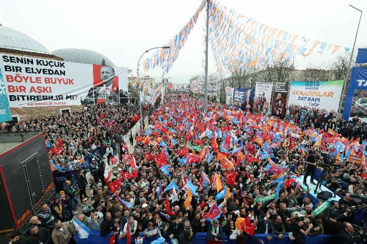 Yerel seçimlere 3 gün kala Türkiye'yi karış karış gezen Cumhurbaşkanı Erdoğan, Bursa'da miting düzenledi.