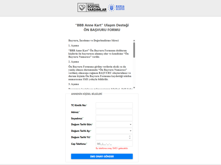 Anneler kendi kimlik bilgileriyle başvuru yapacak.