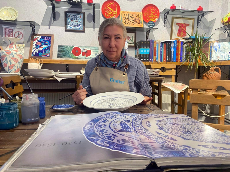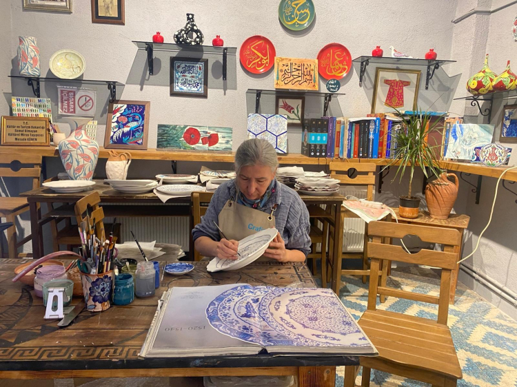 ‘Devlet sanatçısı’ çini ustası, İznik’i resmettiği eserini Bursa'ya gelecek Papa için hazırlıyor