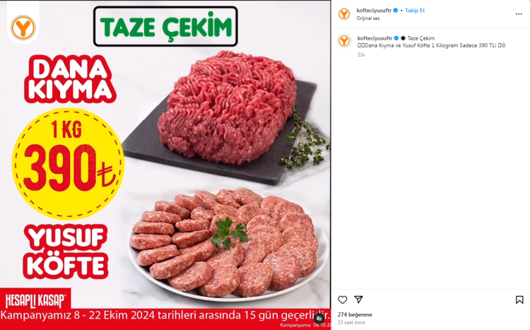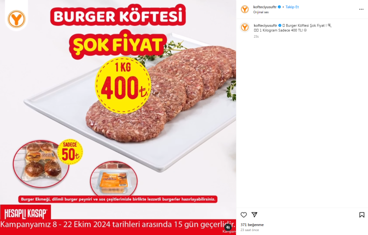 2 şubesinde domuz eti çıktığı iddia edilen Köfteci Yusuf sosyal medya hesabından indirim kampanyası paylaşımı yaptı.
