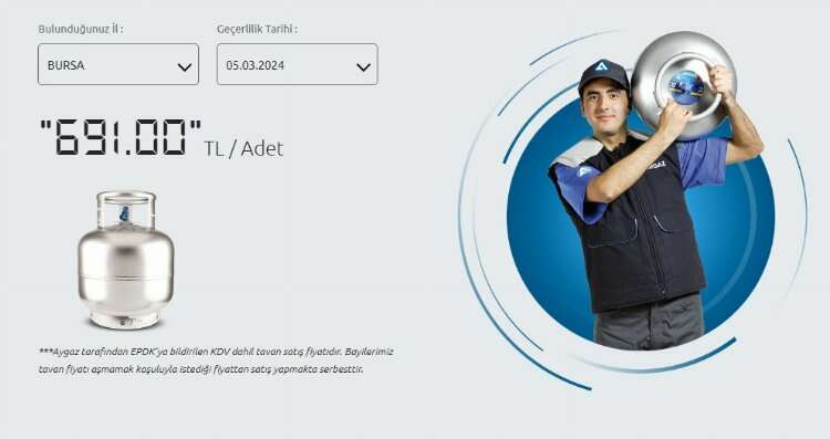 Yapılan zam sonrası 20 TL'lik bir fiyat artışı ile mutfak tüpünün fiyatı 691 TL'ye çıktı.