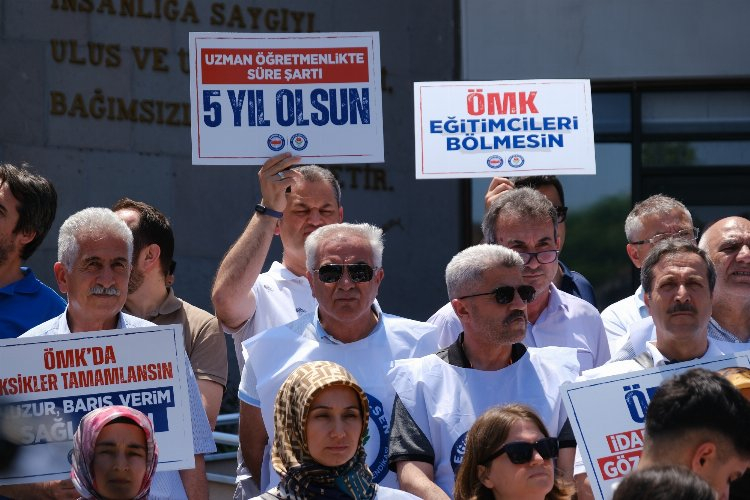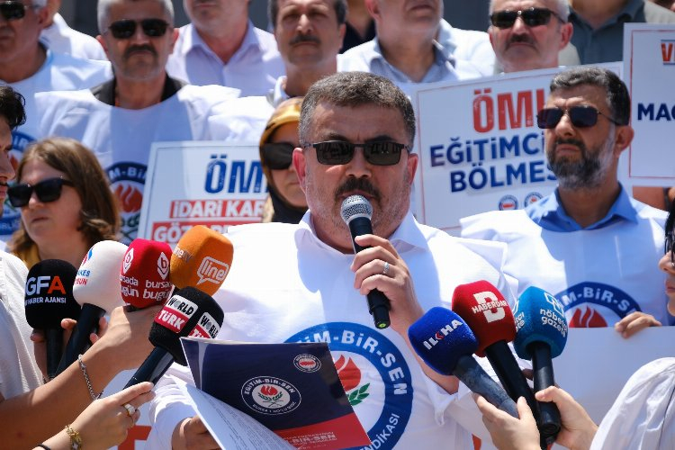 Eğitim-Bir-Sen, Milli Eğitim Bakanlığı'nın hazırladığı yeni Öğretmenlik Meslek Kanunu (ÖMK) ve uzman öğretmenlik kararını 81 ilde protesto etti. Bursa'da İl Milli Eğitim Müdürlüğü önünde basın açıklaması gerçekleştiren Memur-Sen Bursa İl Temsilcisi, Eğitim-Bir-Sen Bursa 1 Nolu Şube Başkanı Ramazan Acar, "Bugün buraya, yüksek sesle; "Öğretmenlik meslek kanunu, ayrıştırıcı değil kapsayıcı olmalı; Eğitimcileri bölmemeli, haklar yarım kalmamalı." demek için toplanmış bulunuyoruz. Uzun yıllar ihtiyaç haline gelen ve yıllarca talep ettiğimiz Öğretmenlik Meslek Kanunu, nihayet bundan iki yıl önce çıkarılmıştı. Ancak ne yazık ki çıkarılan kanun, bütün uyarılarımıza rağmen ihtiyacı karşılayacak şekilde düzenlenmemiş, daha ilk uygulamasında yetersizliği ortaya çıkmıştı. Kapsamı dar tutulmuş; şube müdürlerini, İlçe Milli Eğitim Müdürlerini, İl Milli Eğitim Müdür Yardımcılarını, bakanlık ve eğitim müfettişlerini, şahsa bağlı uzmanları ve araştırmacıları kapsam dışı bırakan mevcut kanunun bir kısım maddeleri ise Anayasa Mahkemesi tarafından iptal edilmişti. Bu günlerde yetersizliği açık ve iptal edilen maddeleri ile uygulama şansı kalmayan kanunun yeniden düzenlenmesi ve bu sefer kapsamı geniş, şiddete yaptırım içeren ve eğitimcilerin tamamını memnun edecek bir kanun tasarısı, TBMM gündemine gelsin istiyoruz." dedi.