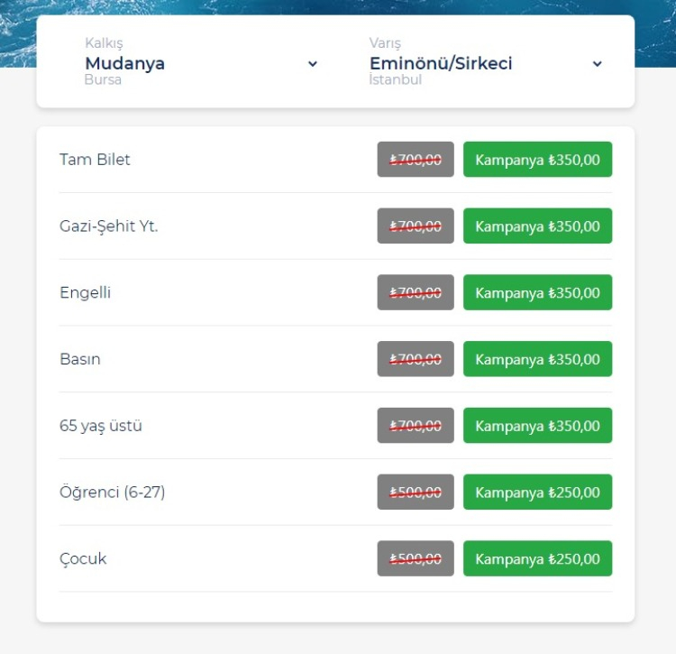 BUDO'da 700 TL olduğu belirtilen biletler; Gazi-Şehit Yt., engelli, basın ve 65 yaş üstü vatandaşlar için 350 TL'den satılıyor. 500 TL olduğu ifade edilen öğrenci (6-27 yaş) ve çocuk biletleri ise 250 TL'den alınabiiyor...