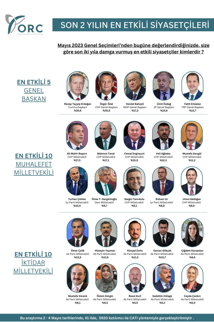 Anket şirketi katılımcılara, "Mayıs 2023 Genel Seçimleri’nden bugüne değerlendirdiğinizde, size göre son iki yıla damga vurmuş en etkili siyasetçiler kimlerdir?" sorusunu sordu.