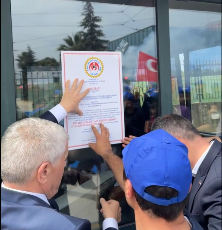 Aldıkları ücretlerden memnun olmadıklarını, geçinemediklerini ifade eden işçiler, "Direne direne kazanacağız. İşçiyiz haklıyız kazanacağız. Direniş hakkımız kazanacağız." sloganları eşliğinde alınan grev kararını fabrikaya astı.