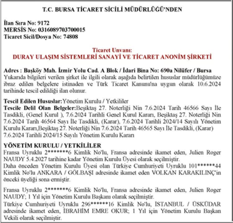 2011 senesinde kurulan Durmazlar Holding bünyesindeki Duray Ulaşım Sistemleri Sanayi ve Ticaret Anonim Şirketi, geçtiğimiz sene Alstom'a satılmıştı.