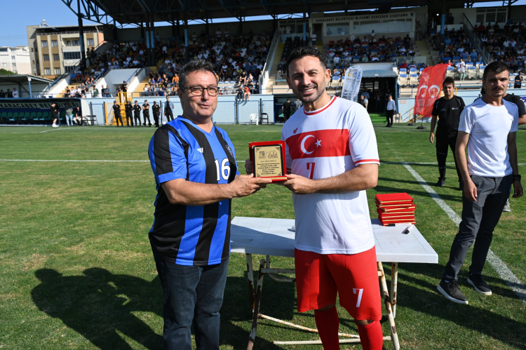 Dostluk maçının sonunda, Türk futbolunun unutulmaz isimleri Belediye Başkanı Fatih Karabatı, Milletvekili Mustafa Yavuz, İl Başkanı Davut Gürkan, İlçe Başkanı Gültekin Saygısever ve Gençlik Spor İlçe Müdürü S. Ayhan Sağlam tarafından plaketle onurlandırıldı.