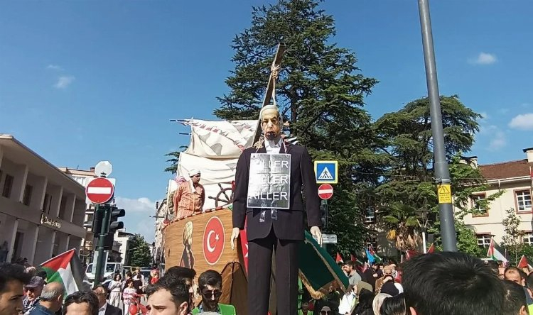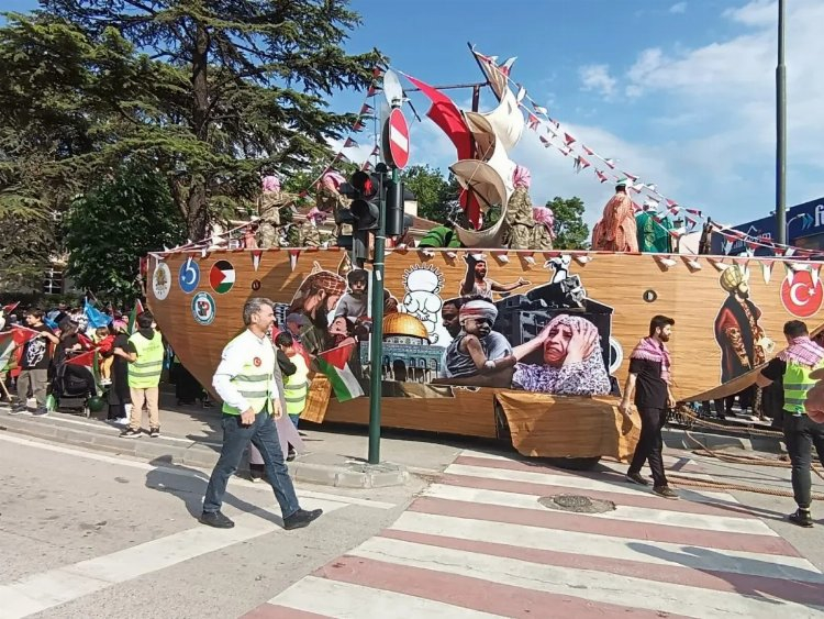 Ellerinde Filistin ve Türk bayrakları taşıyan katılımcılar, Gazze halkına dayanışma mesajı verdiler. Yürüyüş sırasında dikkat çekici bir gösteri de gerçekleştirildi. Bir gemi karadan yürütülerek Filistin'e ablukanın sona ermesi gerektiği vurgulandı.