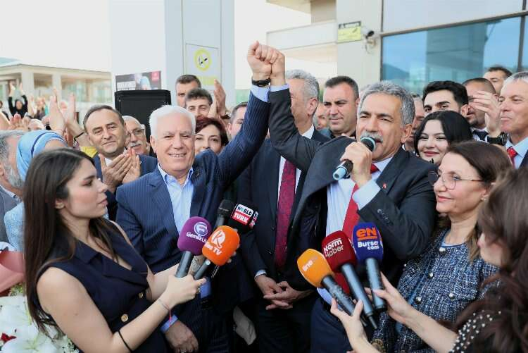 Bursa Büyükşehir Belediye Başkanı seçilen Mustafa Bozbey’in de katıldığı teslim törenine çok sayıda belediye çalışanı ve vatandaş katıldı.