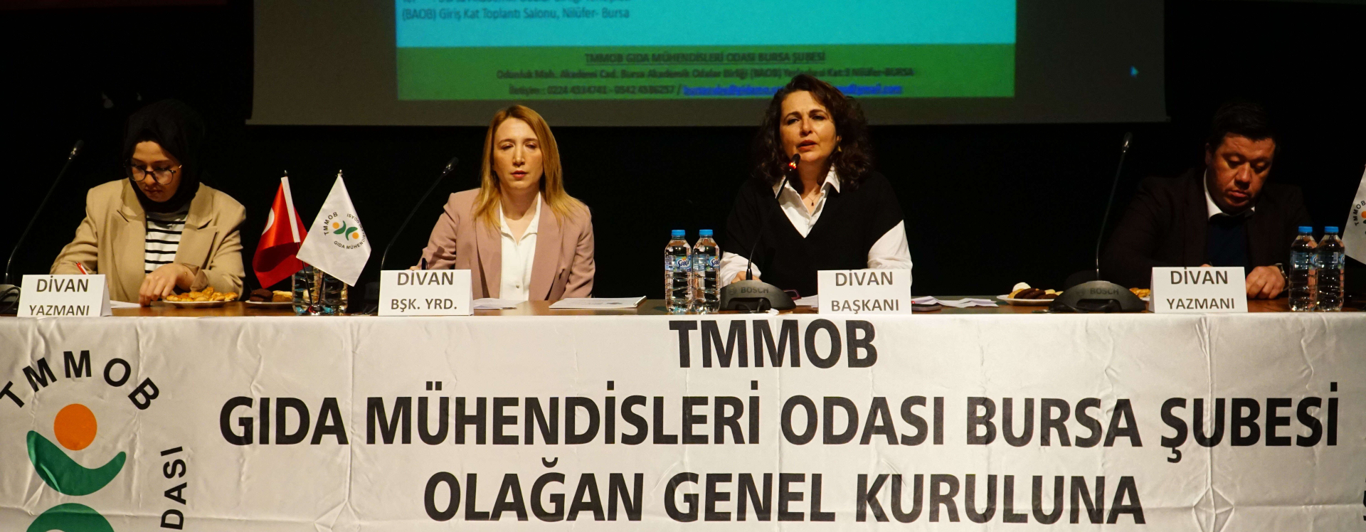 Türk Mühendis ve Mimar Odaları Birliği (TMMOB) Gıda Mühendisleri Odası Bursa Şubesi'nin 9. Olağan Genel Kurulu 20 – 21 Ocak 2024 tarihlerinde Bursa Akademik Odalar Birleşkesi'nde gerçekleştirildi.