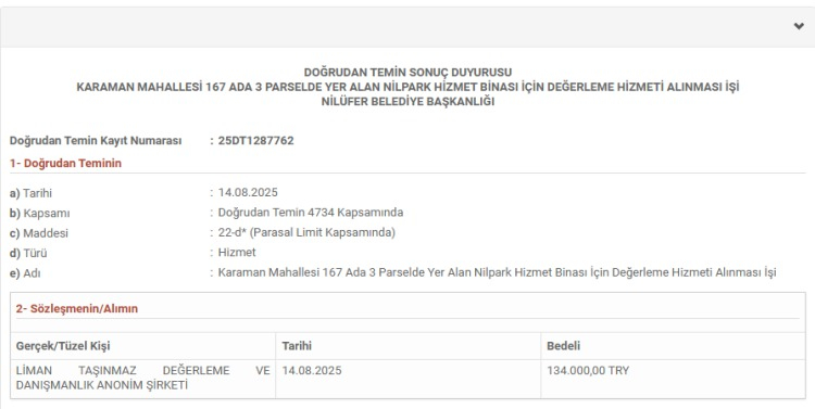 Şadi Özdemir başkanlığında gerçekleştirilen Nilüfer Belediye Meclisi'nin Şubat ayı toplantısının ikinci birleşiminde Nilpark AVM'nin üzerinde yer aldığı 167 ada, 3 numaralı parselin “Belediye Hizmet Alanı” vasfının “Ticaret Alanı” olarak değiştirilmesi ile ilgili gelen talep hakkında hazırlanan rapor oy çokluğu ile onaylanmıştı. AK Partili ve MHP’li üyeler ise ret oyu vermişti. Alınan kararın ardından Nilpark AVM için Liman Taşınmaz Değerleme ve Danışmanlık Anonim Şirketi'nden değerleme hizmeti alınmıştı.