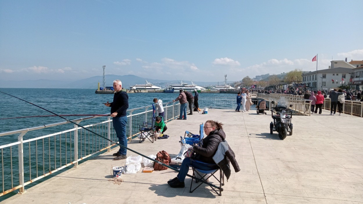 9 günlük tatilin son günlerinde havanın serin olmasına rağmen, güneşli olmasını fırsat bilen günübirlikçiler, bahar havası tadındasoluğu Mudanya’da aldı.