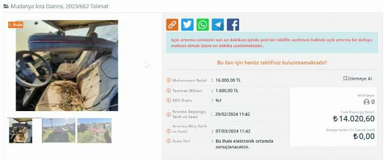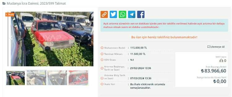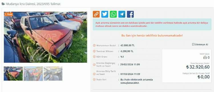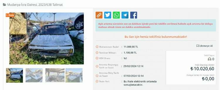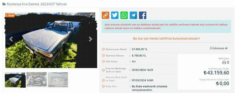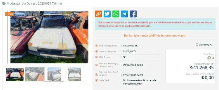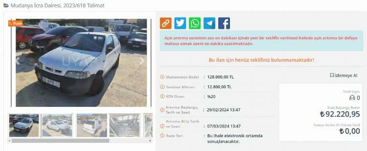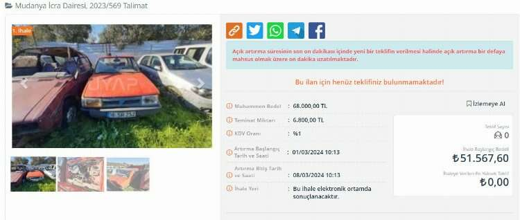 İşte Bursa'da açık artırma ile satılan araçlar ve fiyatları...