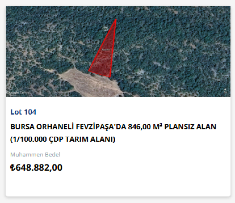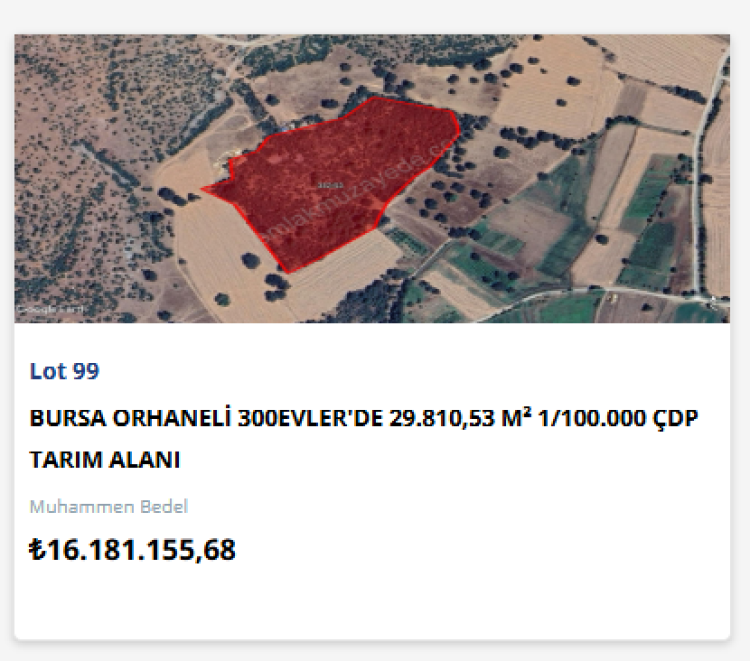 Arsaların en ucuzu 229 bin 678 TL'den en pahalısı 31 milyon 743 bin TL'den açık artırmaya çıkacak