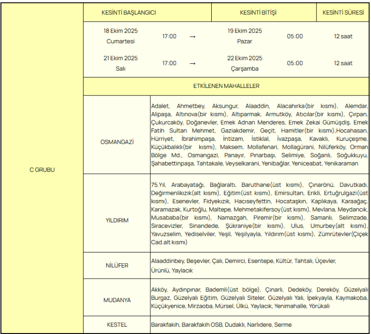 İlçe ilçe duyuruldu: Bursa'da elektrik ve sular kesilecek! (21 Ekim 2025 Bursa elektrik ve su kesintileri)