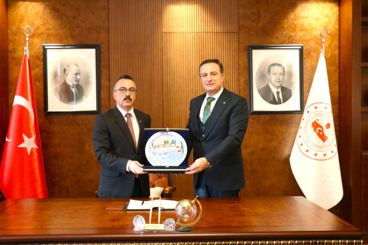 İMSİFED heyetinin İnegöl programında bir diğer durak, İnegöl Kaymakamı Eren Arslan’ın makamı oldu. Ziyarette, İMSİFED Başkanı Şeref Demir İnegöl’ün mobilya üretimindeki güçlü konumunun yanı sıra büyüyen nüfusunun getirdiği ihtiyaçlara dikkat çekti. Başkan Şeref Demir, “Birlikte iş yapma kültürünü geliştirelim, herkes sermayesi oranında bir katkı sağlayabilsin, kimse sistemin dışında kalmasın ve yaşanabilir şehirler oluşturalım istiyoruz. Bizler de, kentsel dönüşümden, altyapı planlamasına kadar birçok başlıkta İMSİFED olarak katkı sunmaya hazırız” ifadelerini kullandı. Ziyaret sonunda İMSİFED ve İMSİAD YKB. Şeref Demir, İnegöl Kaymakamı Eren Arslan’a teşekkür plaketini takdim etti.