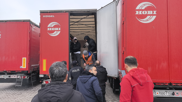 Başka bir TIR'ın dorsesinden kaçan 3 kişiyi arama çalışmaları sürüyor.