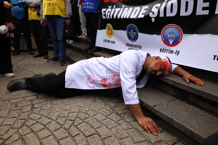 Bursa İl Milli Eğitim Müdürlüğü önünde tüm sendika temsilcileri birer açıklama yaparak, eğitimde şiddet yasası çıkartılmasını talep etti.