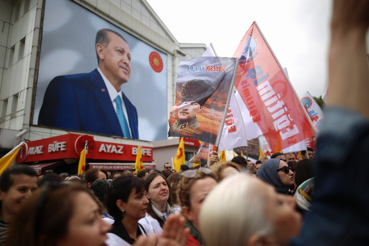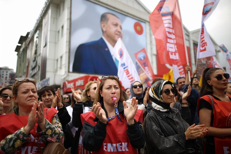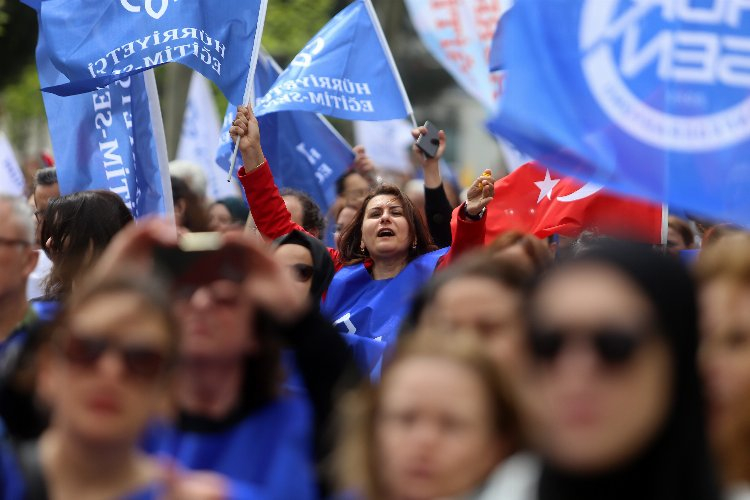 15 Temmuz Demokrasi Meydan’ında toplanan binlerce kişilik kalabalık, Fevzi Çakmak Caddesi’nden İl Milli Eğitim Müdürlüğü önüne kadar sloganlarla ve düdük çalarak yürüdü.