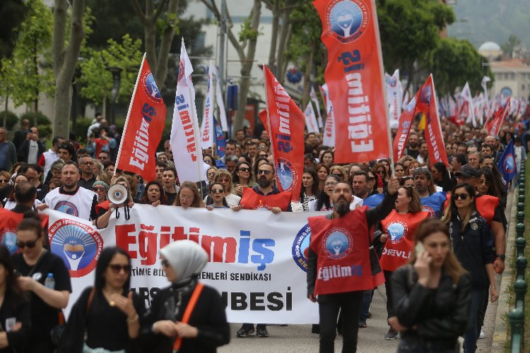 Bursa’da 7 eğitim sendikası bir araya gelerek İstanbul’da öldürülen lise müdürü İbrahim Oktugan için eylem gerçekleştirdi.