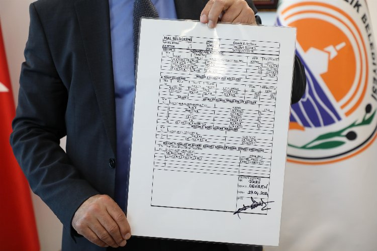 Konuşmaların ardından Gemlik Belediye Başkanı Şükrü Deviren tarafından mal beyanı imza altına alınarak belediye duyuru panosuna asıldı.