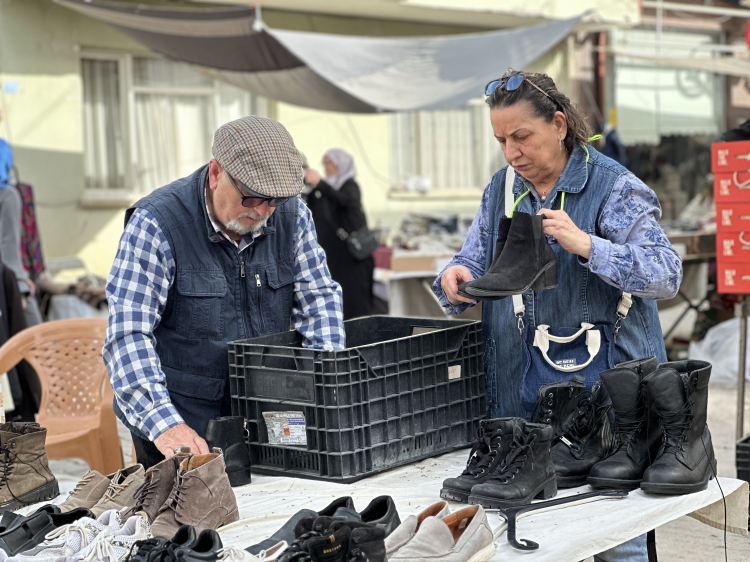Bursa'da emekli öğretmen Ayşe Selmin Aydoğdu’nun (67), 2016 yılında, kullanmadığı ikinci el kıyafetlerini pazarda satıp, gelirini öğrencilere bağışladığı iyilik hareketi, zamanla sosyal sorumluluk projesine döndü. Çevresinden gelen hem ikinci el hem de kullanılmamış eşyalarla tezgahını büyüten Aydoğdu’nun sattığı, kadın, erkek ve çocuk kıyafetleri ile ayakkabılardan ihtiyaç sahipleri, ücretsiz olarak istediklerini alabiliyor.