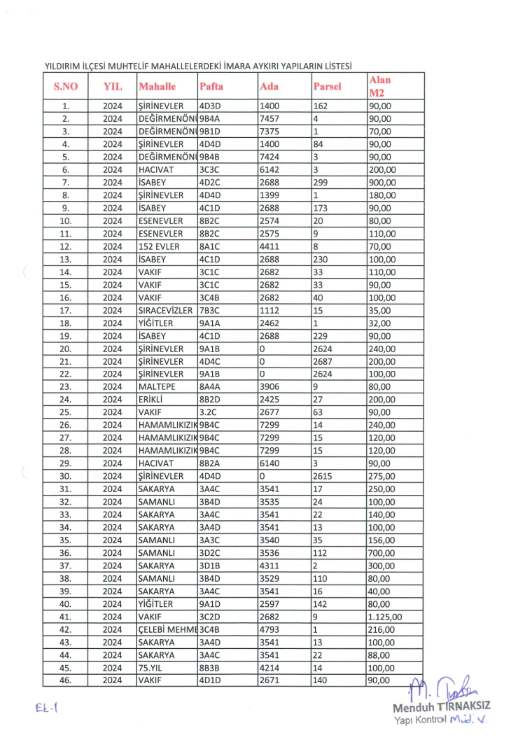 Yıldırım Belediyesi, onlarca mahallede tespit edilen kaçak yapıların adreslerini tek tek paylaştı.