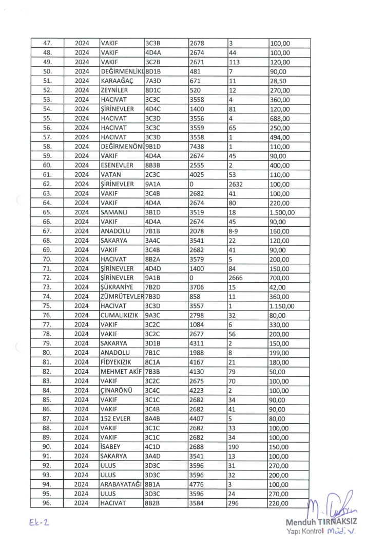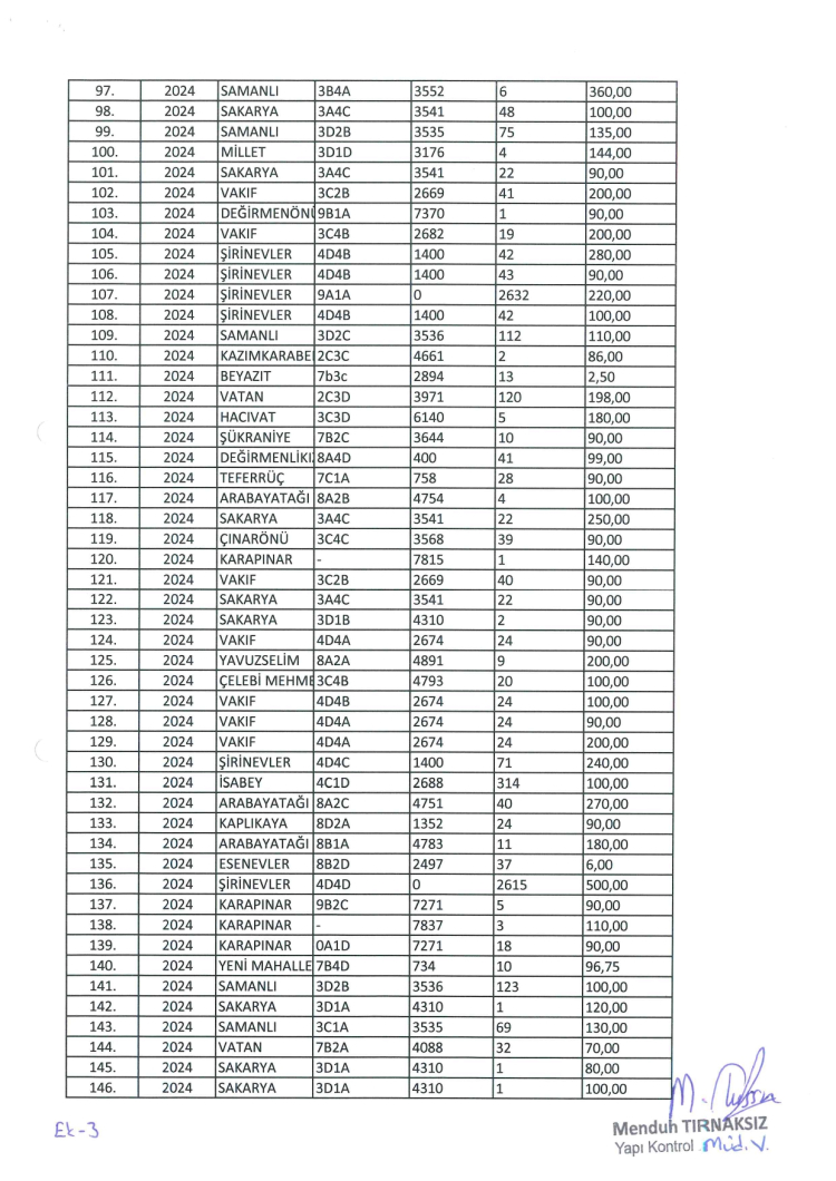 Şirinevler, Değirmenönü, Hacıvat, İsabey, Esenevler, 152 Evler, Vakıf, Sıracevizler, Yiğitler, Maltepe, Erikli, Hamamlıkızık, Sakarya, Samanlı, Çelebi Mehmet, 75.Yıl, Değirmenlikızık, Karaağaç, Zeyniler, Vatan, Anadolu, Şükraniye, Zümrütevler, Cumalıkızık, Fidyekızık, Mehmet Akif, Çınarönü, 152 Evler, Ulus, Arabayatağı, Millet, Kazımkarabekir, Teferrüç, Karapınar, Yavuzselim, Kaplıkaya, Yeni Mahalle ve Yunusemre mahallelerinde bulunan 173 yapı hakkında yıkım kararı alındı.