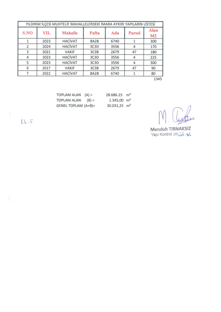 Toplamda yıkım yapılacak alanın 30 bin 31 metrekare olduğu belirtildi.