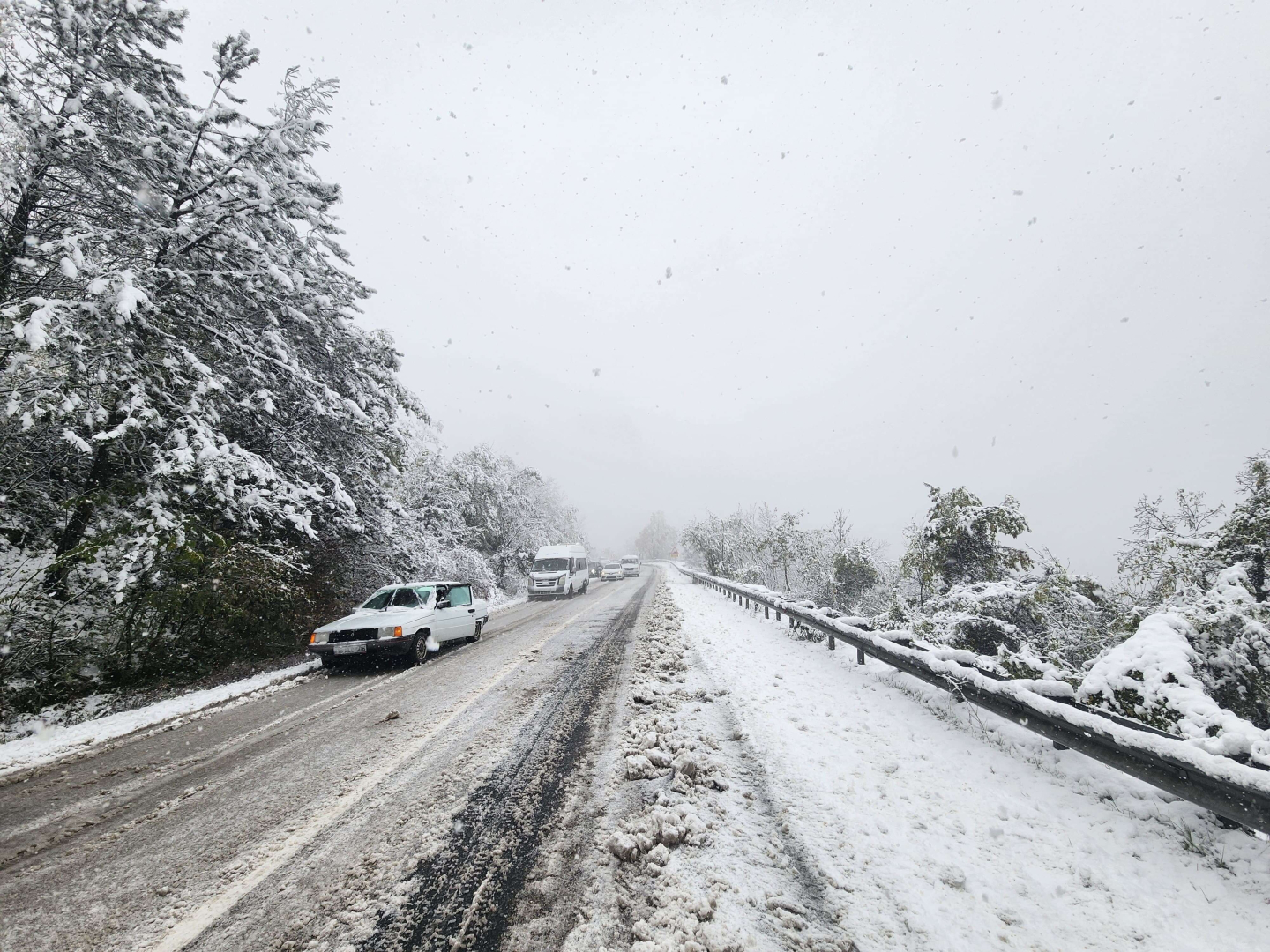 Trafiğin zaman zaman durduğu ve araç kuyruklarının oluştuğu kara yolunda ulaşım güçlükle sağlanıyor.
