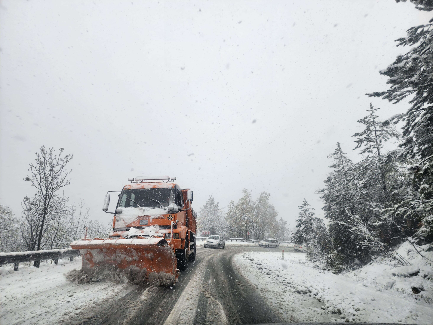 Bursa'nın Orhaneli ilçesinde kar yağışı nedeniyle kente bağlanan kara yolunda ulaşımda aksamalar yaşanıyor.