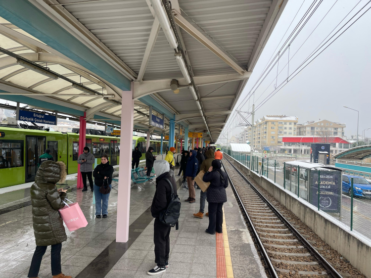 Kar yağışının etkili olduğu Bursa'da henüz belirlenemeyen bir sebeple metro seferleri durdu.