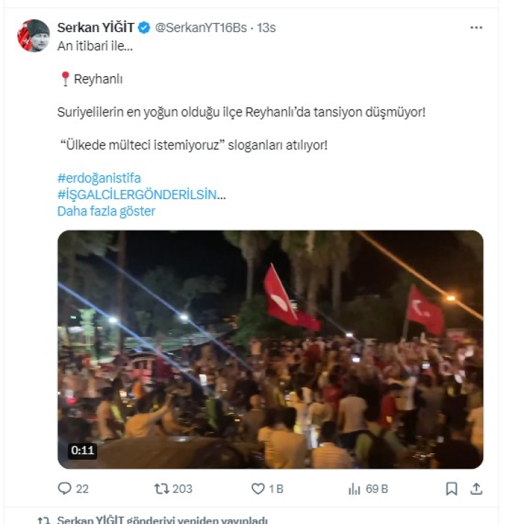 Kayseri'de Suriyeli bir çocuğun Suriyeli bir sapık tarafından istismar edilmesi üzerine başlayan olaylar Bursa'ya da sıçradı. Sosyal medyada protestolar hakkında paylaşımlar yapan bir kişi Bursa'da, "halkı kin ve düşmanlığa tahrik" suçlaması ile göz altına alındı.